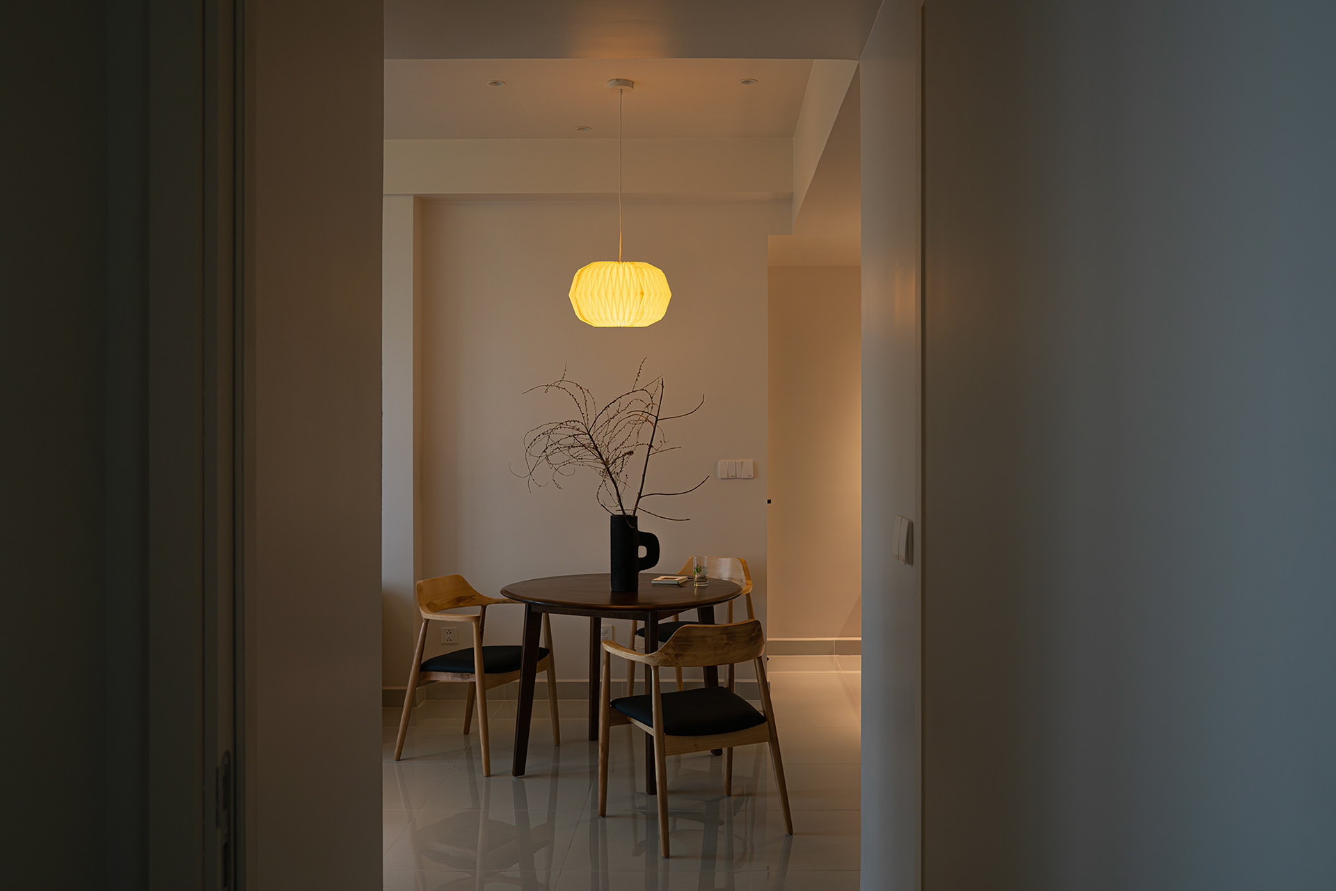 A coherent circulation spine operates as an implicit spatial boundary, subtly defining zones and creating buffer spaces—an uncommon luxury in small-scale apartments—allowing functional areas to coexist without encroaching on one another.