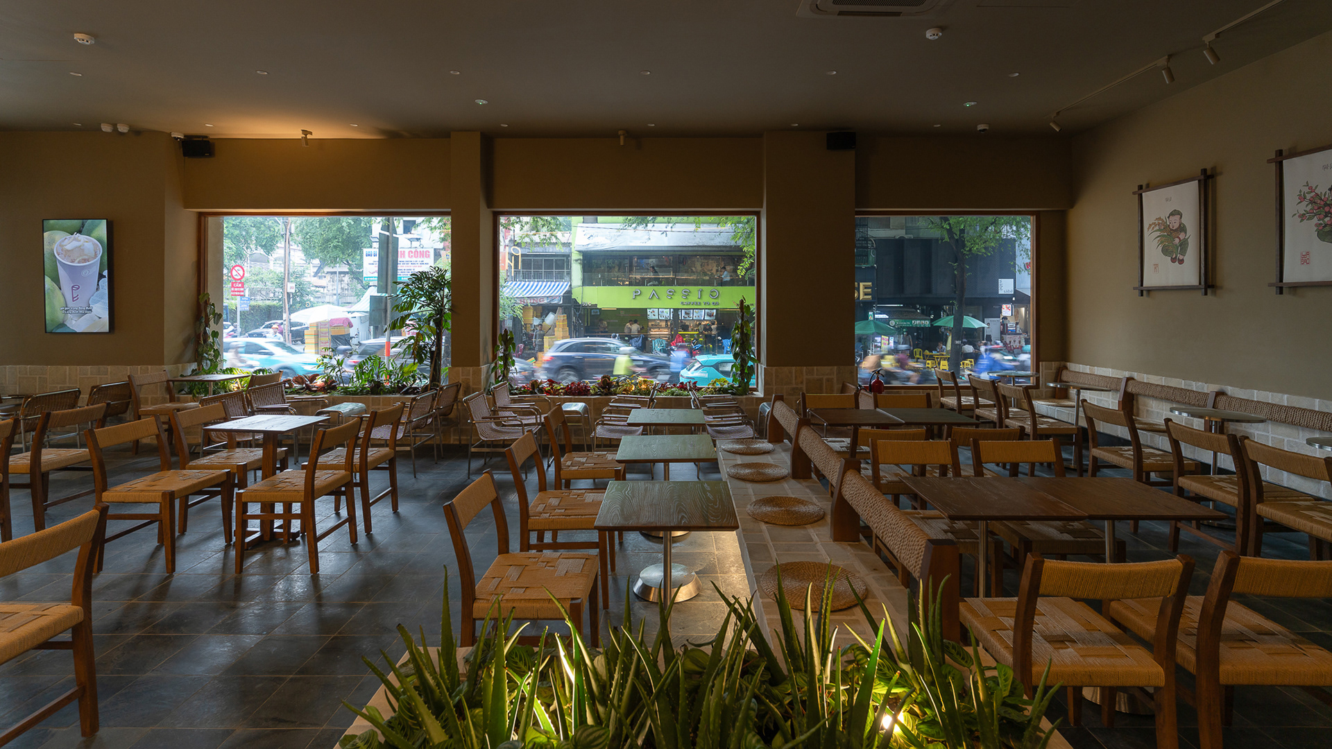 The main counter area, in many ways, still stands where the old parcel counter used to be — facing Nguyễn Du Street, with wide windows opening to the lively street life outside. Somewhere within, traces of the old ways of living still linger across the main façade, stretching through the entire space.